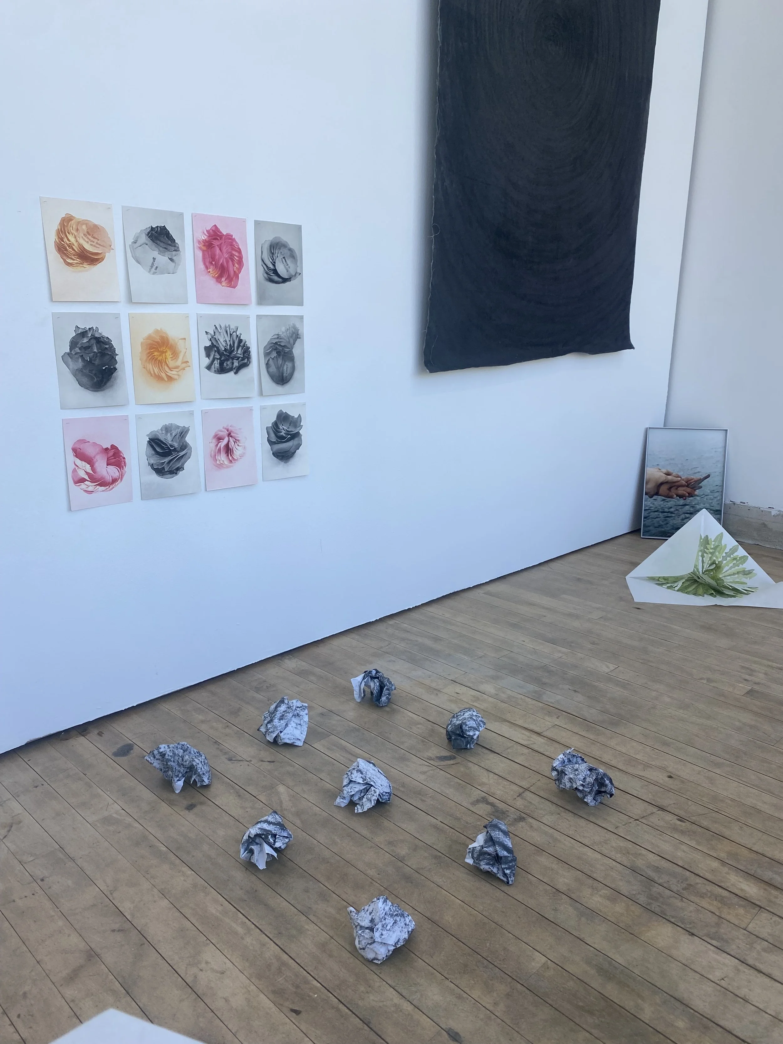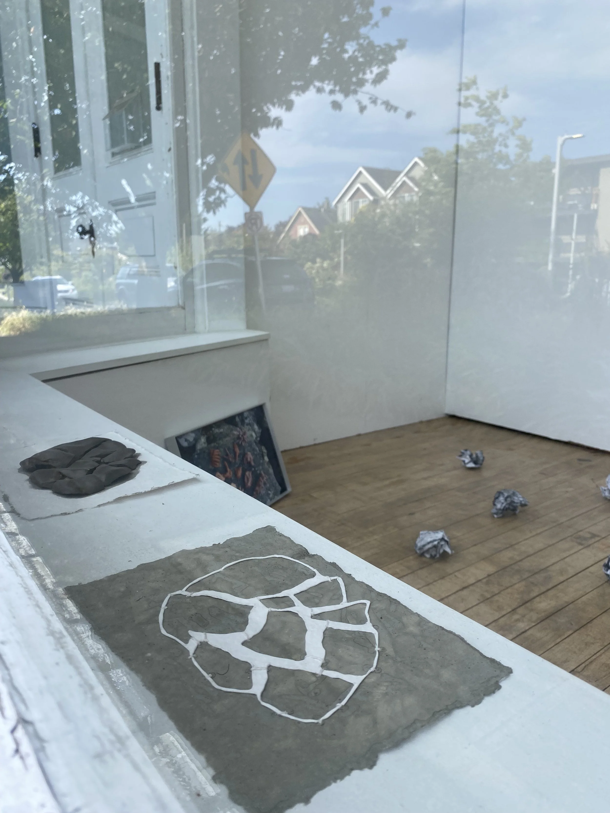 For this exhibition, the gallery becomes the shore. Photographs, prints, pulp, and clay wash aground from multiple continents, then retreat, and wash aground again. Over the course of Anchor Points, the tide will come in and out of the gallery four times, revealing single works presented in multiple iterations. Every two weeks, the Das Schaufenster directors will enact written prompts that cause the work to orbit, expand, multiply, crumple, fold, dissolve, and reemerge in unexpected forms and relationships.
